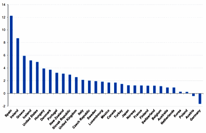The Report argues that aggregate demand policies continue to have a role to play in supporting economic recovery and in stimulating job growth. And monetary policy has been used by many OECD countries to increase aggregate demand by keeping interest rates low. However, the recent interest rate increase by the ECB - with indications given that there are more increases to come in 2011 – will hamper the efforts of policy makers in the three countries in the Euro Area (Spain, Ireland and Greece) that have seen the largest increases in the rate of unemployment in the OECD.