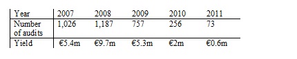 The Minister would not/could not provide details of the number of Capital Acquisition Tax audits that had taken place in recent years. Instead provided total figures for audits carried out under three headings, Stamp Duty, Pensions & CAT. Even then the numbers were appalling. However in the circumstances it is fair to say that no CAT audits have taken place in recent years.