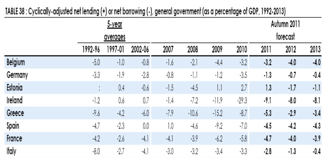 It is worth simply pointing out what the EU Commission has recorded on the Irish ‘structural deficit’.