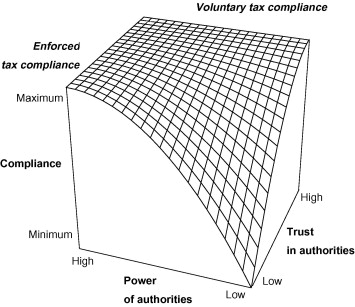 Professor Kirchler mapped the overall tax take along these two dimensions as a “slippery slope” that looks like this: