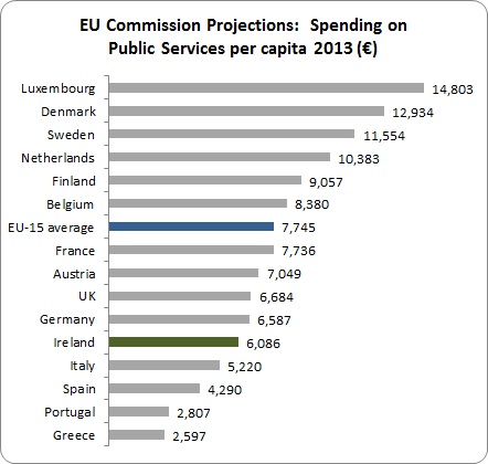 Ireland would have to increase its spending on public services by €7.5 billion just to reach the average EU-levels. There’s doing more with less as the mantra goes; then there’s doing less with a lot less.