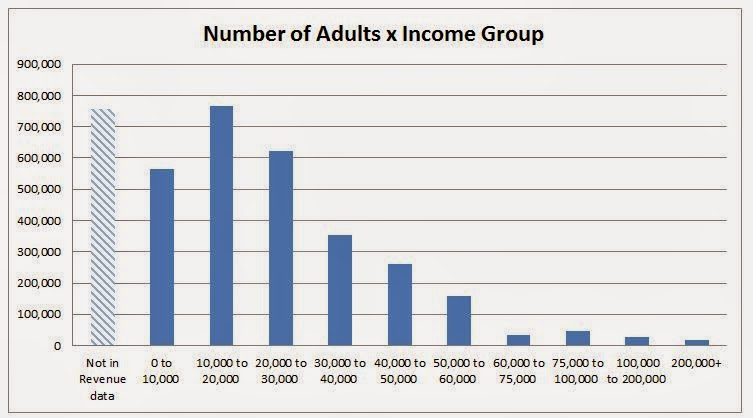 - Revenue has no data for over 750,000 adults (15+), who have no taxable income - presumably for many of the approximately 350,000 secondary and third level students aged 15+, as well as for some people entirely reliant on social protection incomes.
