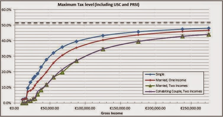 “If you take the tax rate that a young Irish professional or a young Irish building worker pays in London, they won’t go into the higher rate until they are at in excess of £150,000 (€190,000), they go into the higher rate here at €32,800.” (Minister Noonan, Summer 2014)