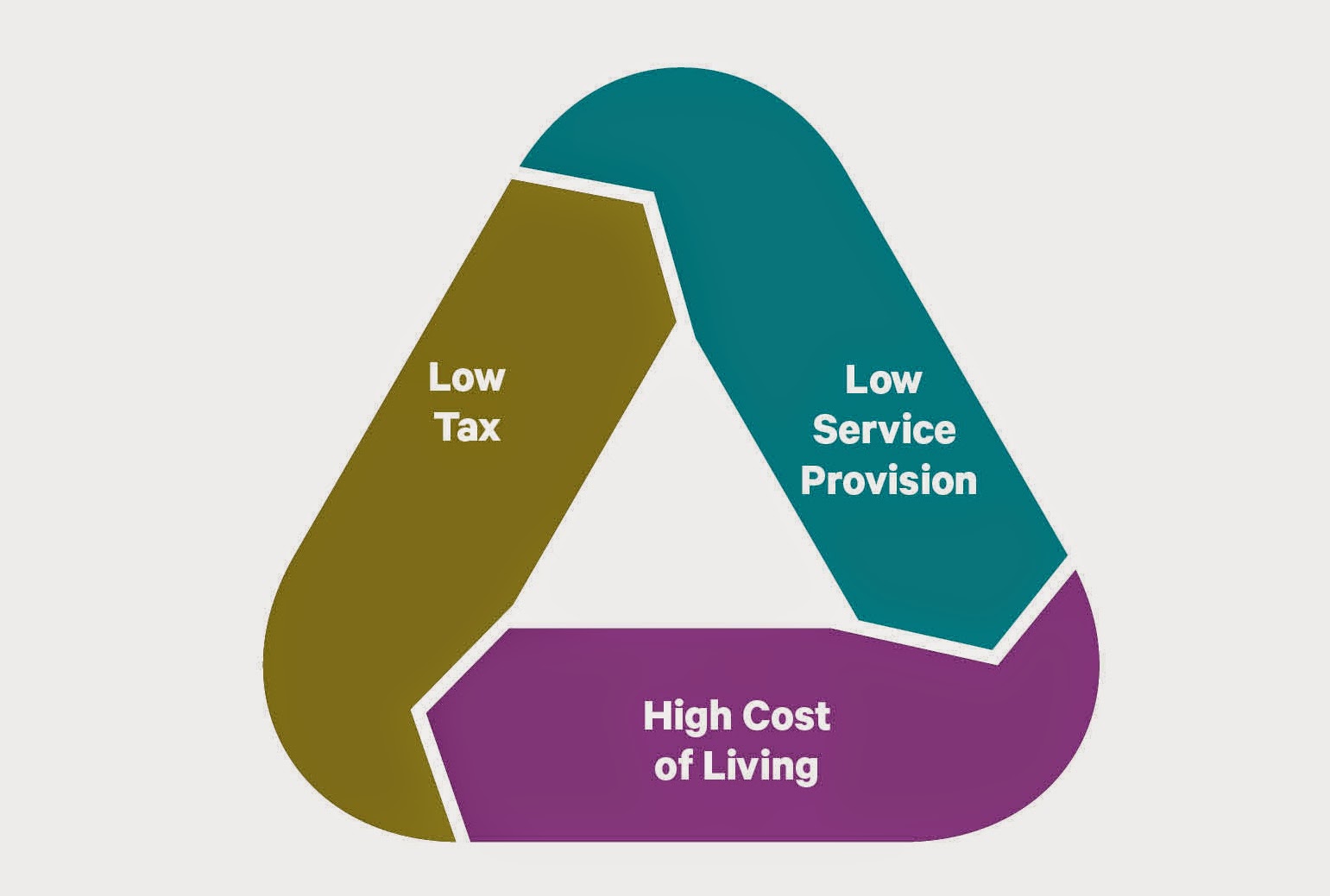 Taking these three together (Public Services, Tax and the Cost of Living) we see that Ireland is stuck in a low-tax spiral. Because we have low overall taxation, we don’t subsidise as many services as other countries. This causes people to put their hand in their pocket for services - GP visits, school books, transport - that would be free-of-charge or cheaper in other countries. Because people in Ireland have less cash after these costs are paid for, they may not see the value of paying more tax. Which means we can’t provide the services… and the cycle continues.
