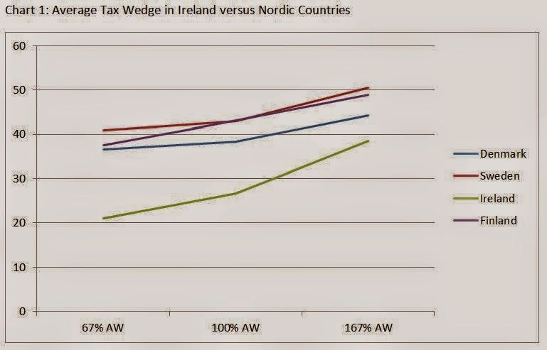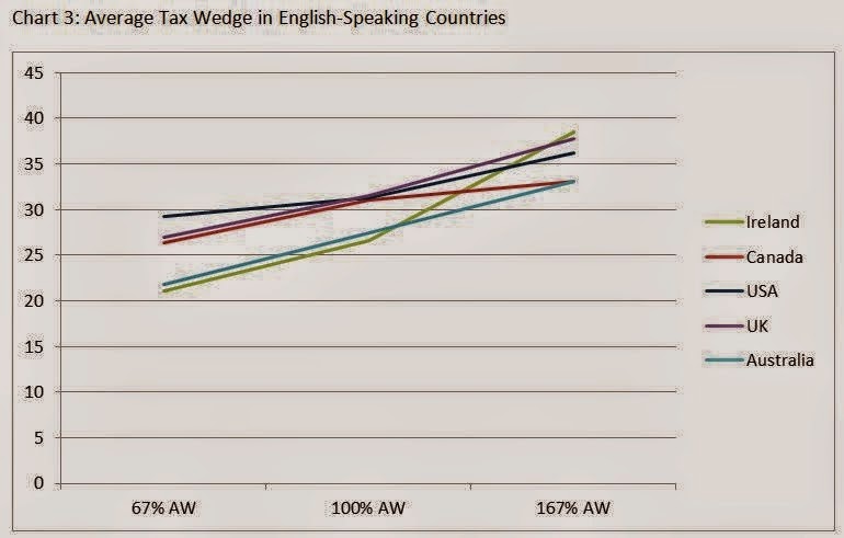 As shown previously, Ireland has the most ‘progressive’ income tax system because it starts with low taxes for those on low and average incomes and ends around average for those on high incomes.