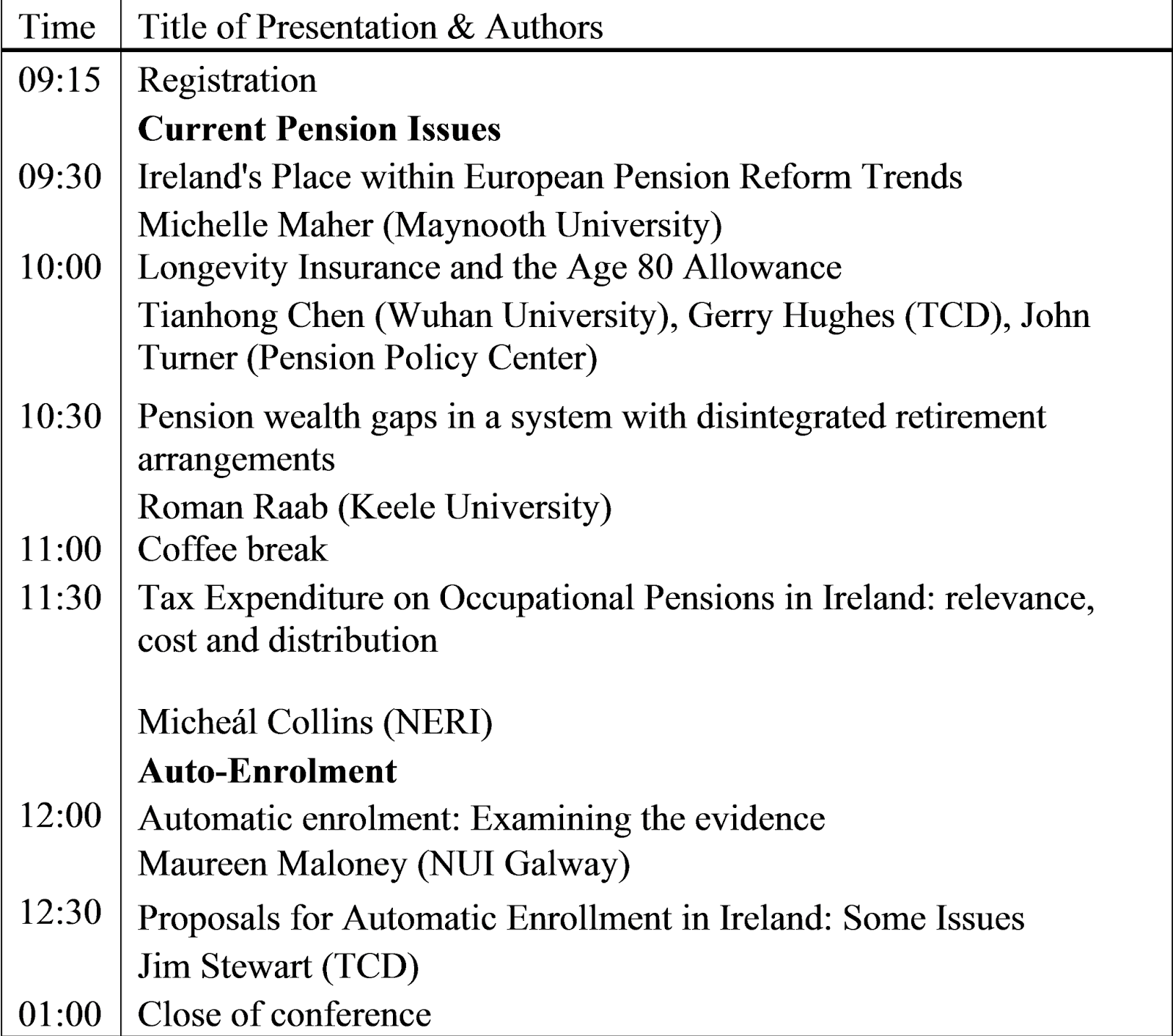 The conference aims to promote discussion on current pension policy issues. It is intended for pension providers, regulators, trustees, advisors, academics and members of pension schemes.