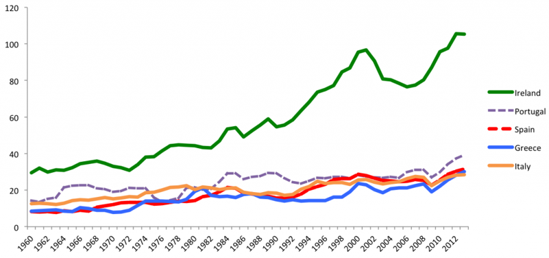Aidan Regan: It has been a truly remarkable few years for Ireland and the European Union. In the space of five years Ireland has gone from being the basket case of the European Monetary Union to its number one success story. Economic growth is now the strongest in the Euro area, and according to the most recent data, this growth is having a real impact on employment. The dominant narrative among policymakers in the EU is that other peripheral states of the Eurozone should follow the Irish adjustment back to the market.