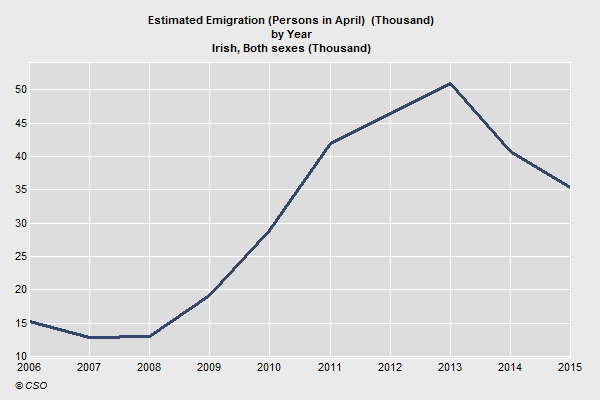 Chart 2 Numbers of Irish Emigrating 2006-2015